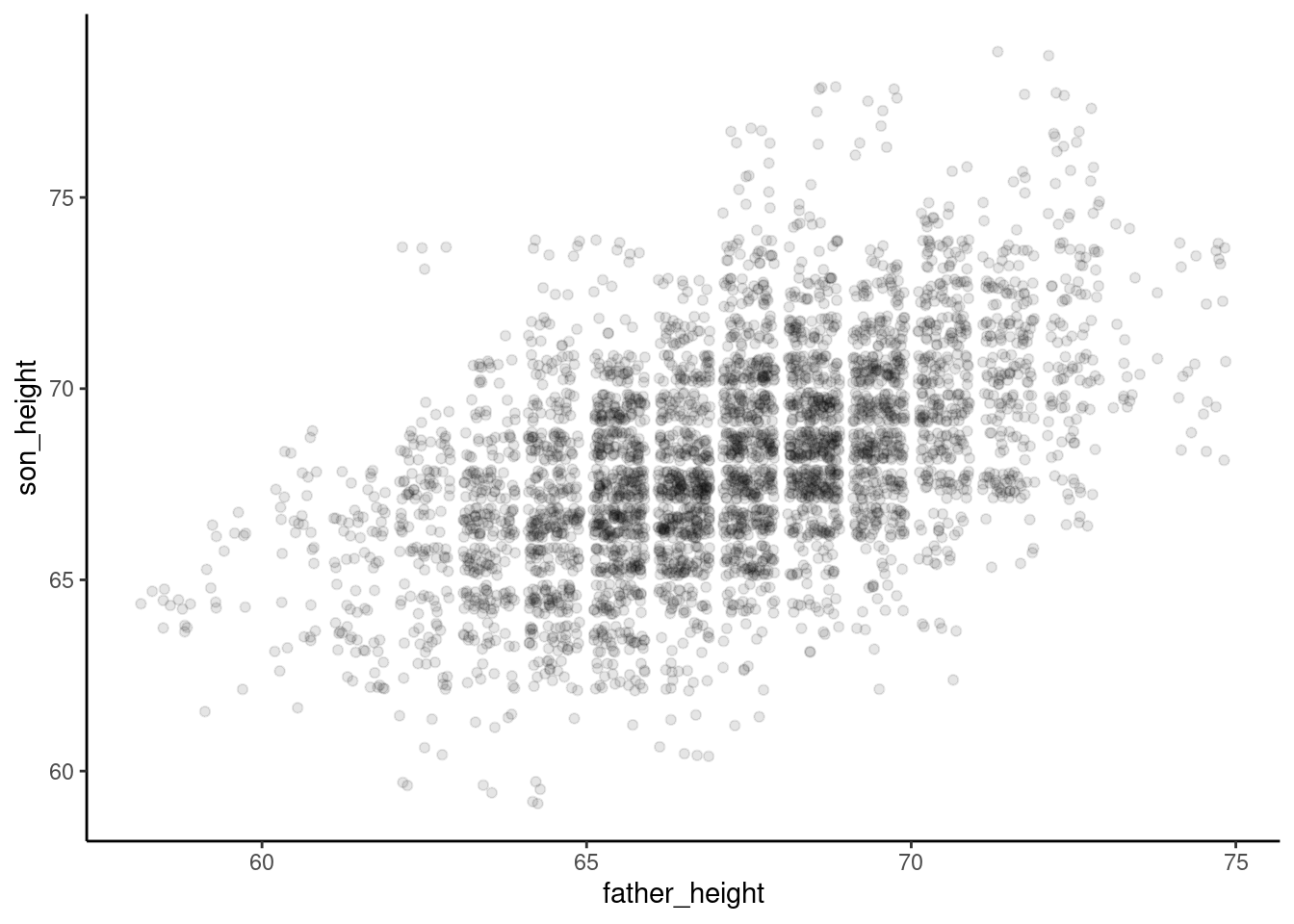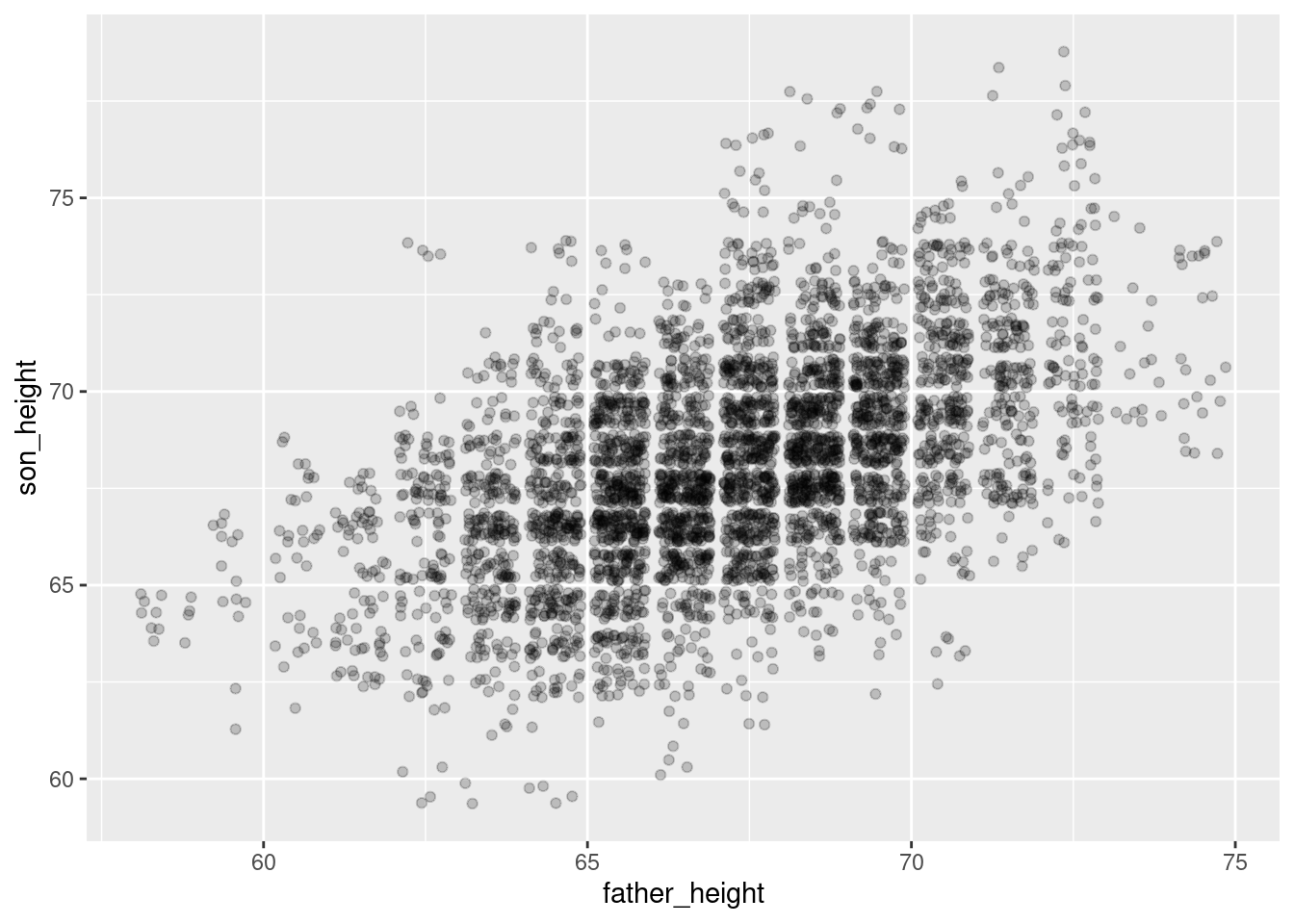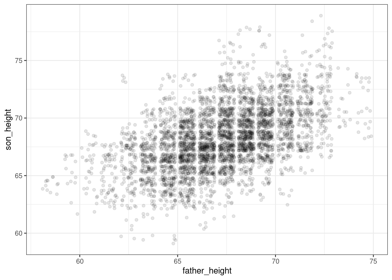 ggplot(pl, aes(father_height, son_height)) + geom_jitter(alpha = .1) +