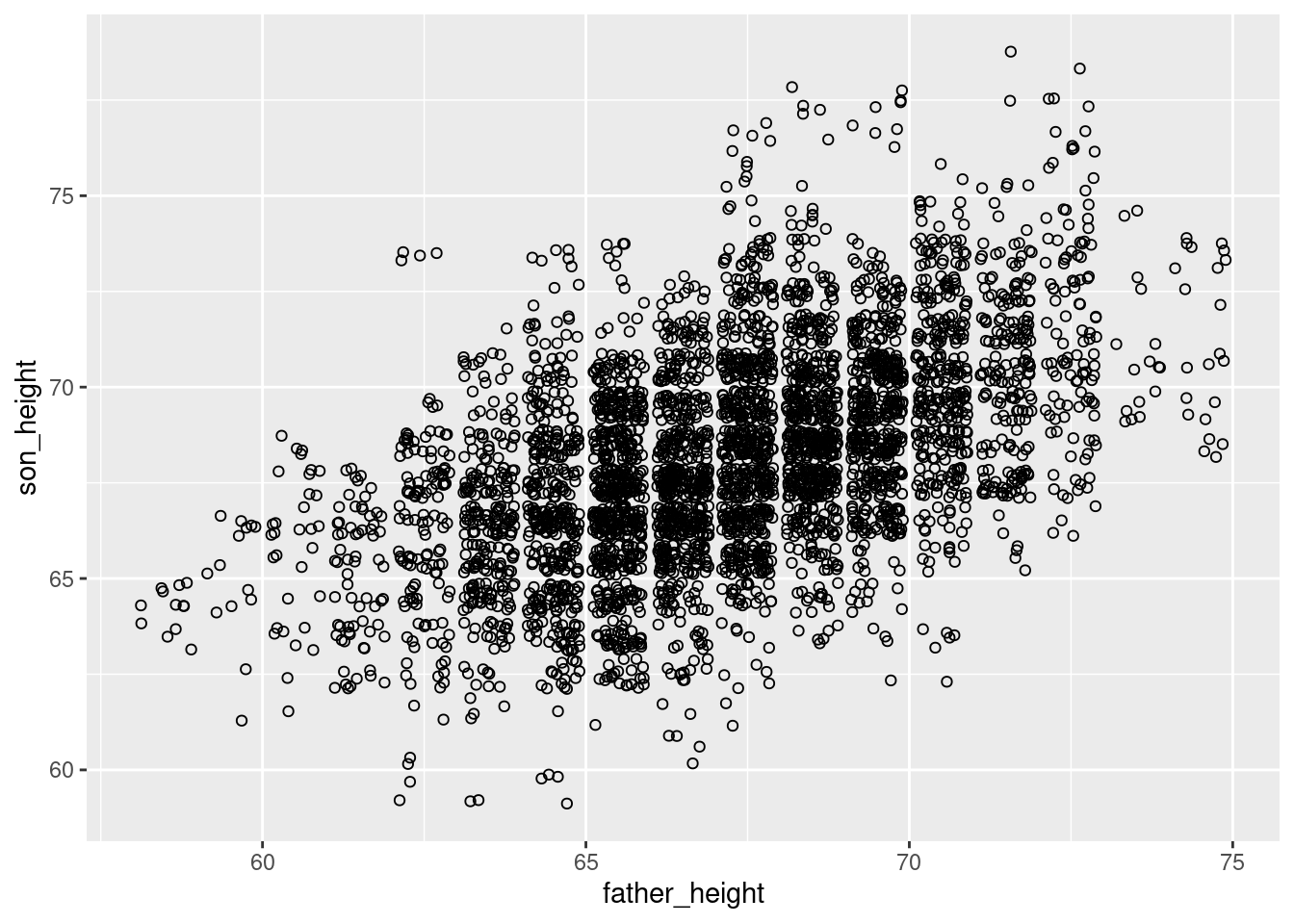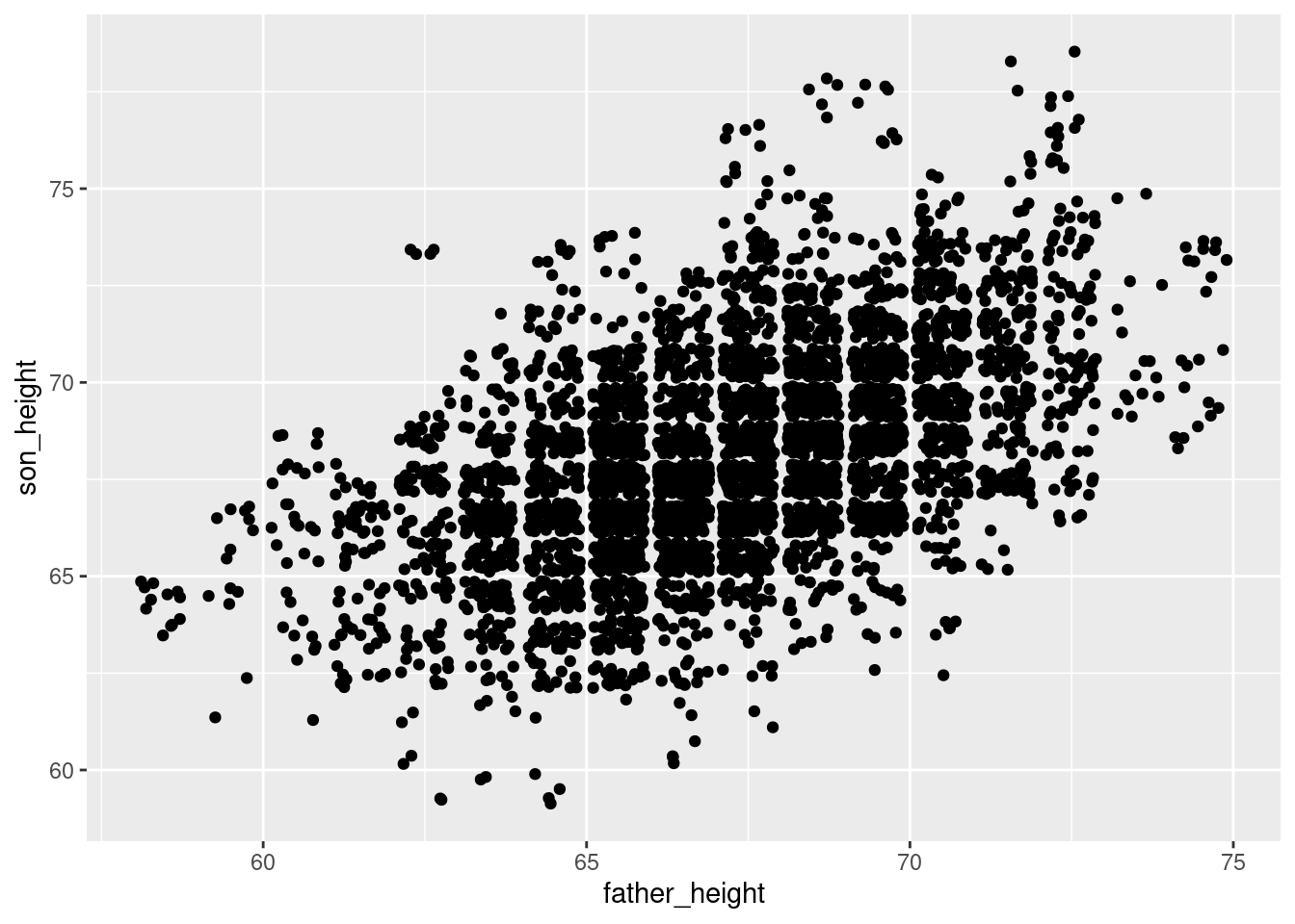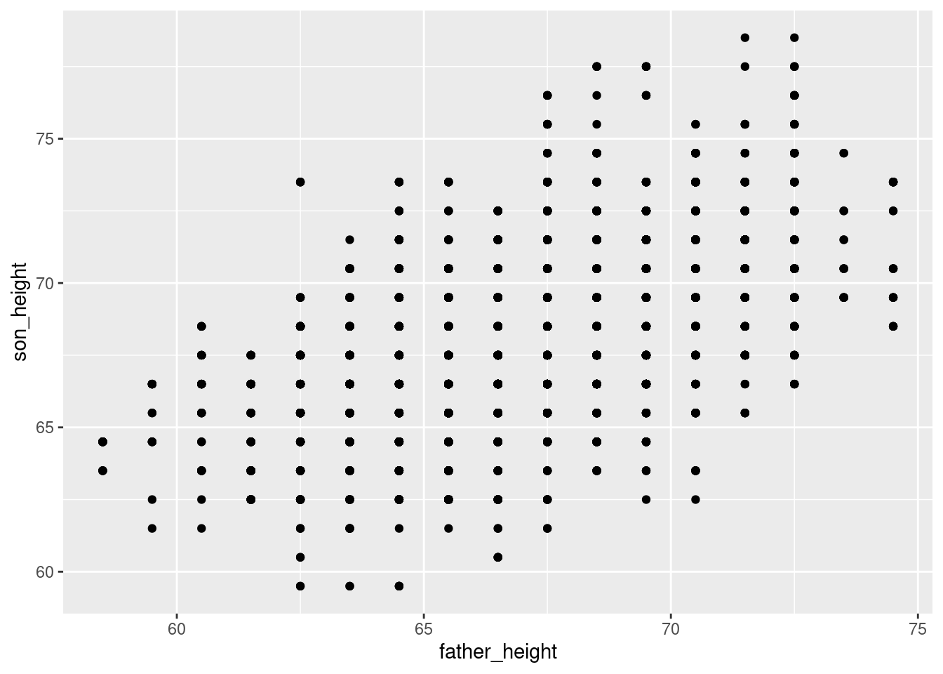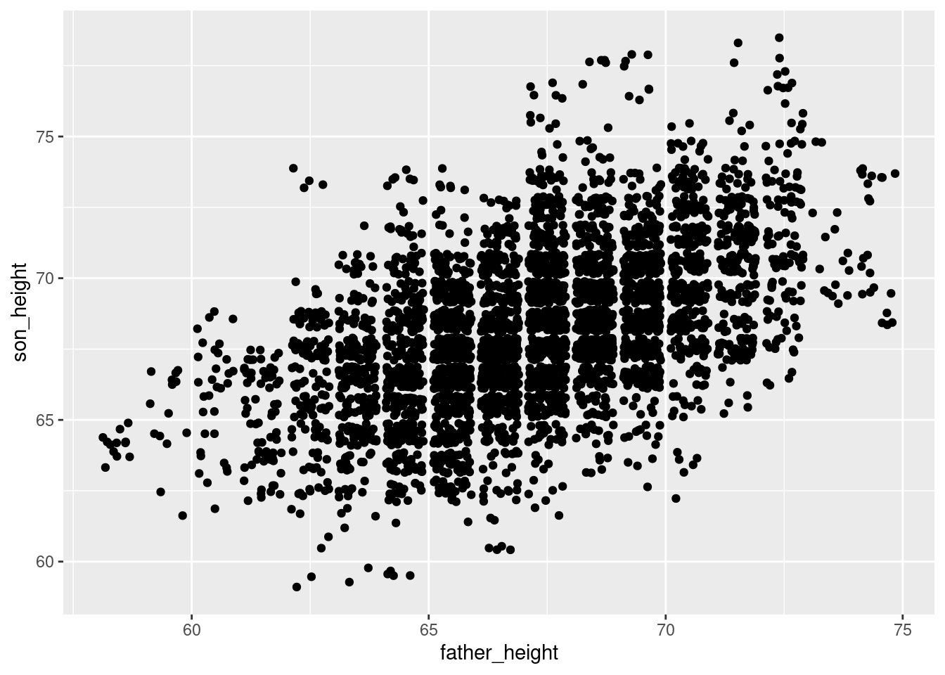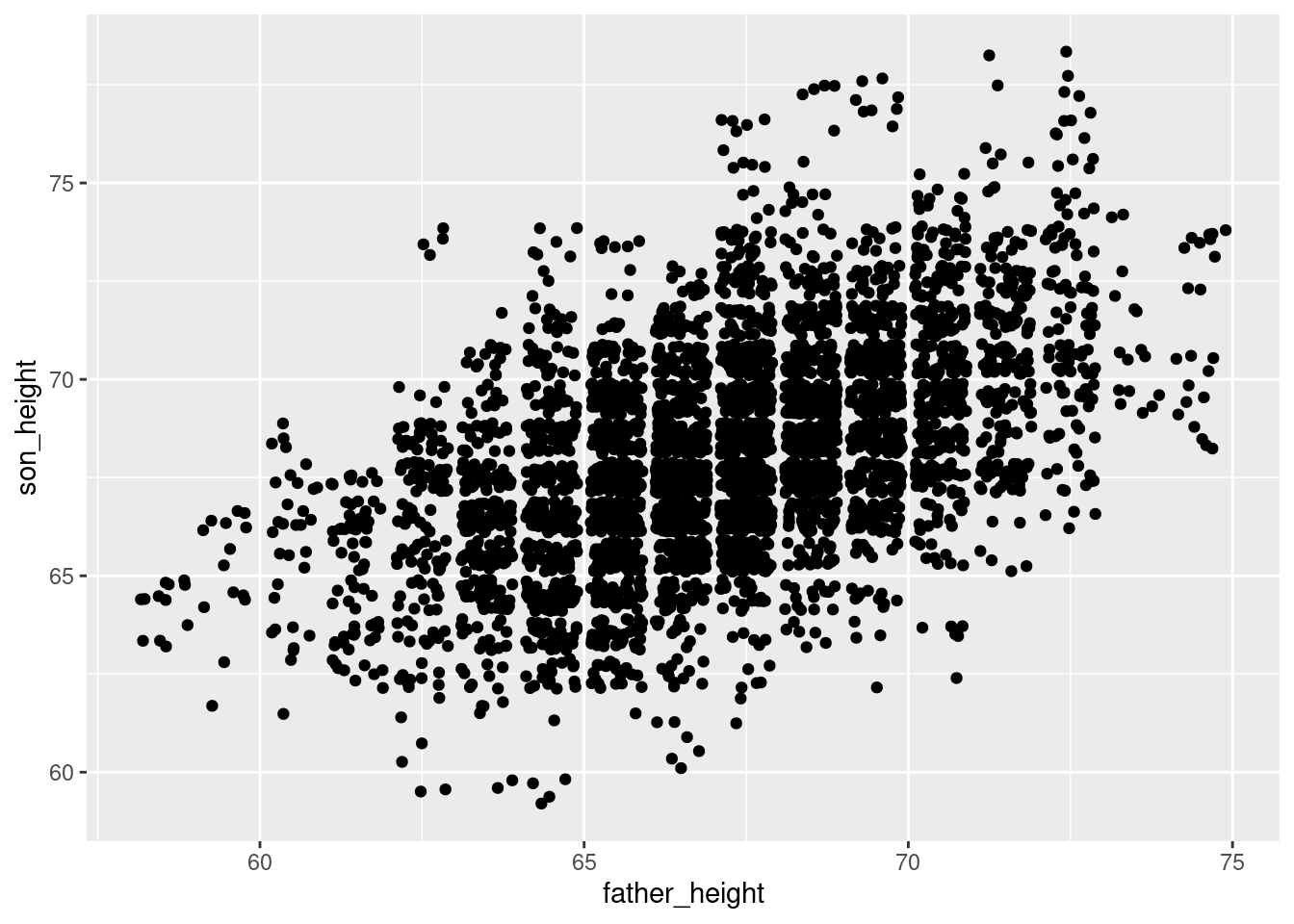 ggplot(pl, aes(father_height, son_height)) + geom_point(position = "jitter")